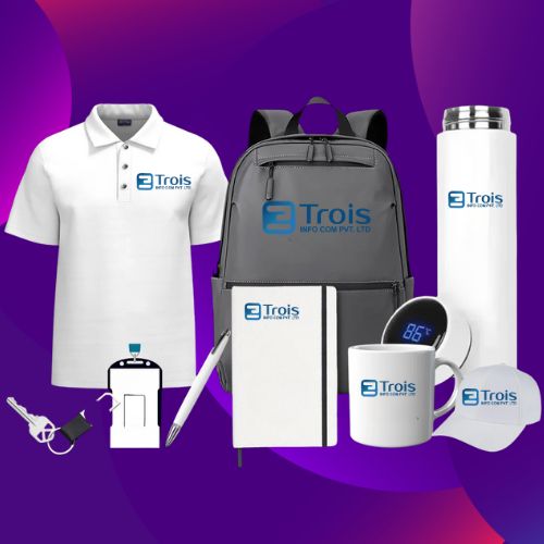 Trois Info Com Private Limited specializes in premium corporate gifting and promotional merchandise. From stylish caps and bottles to tech accessories, apparel, and lifestyle essentials, we offer quality products backed by trusted brands. Our curated range ensures impactful branding and memorable gifting experiences tailored to every corporate need.
